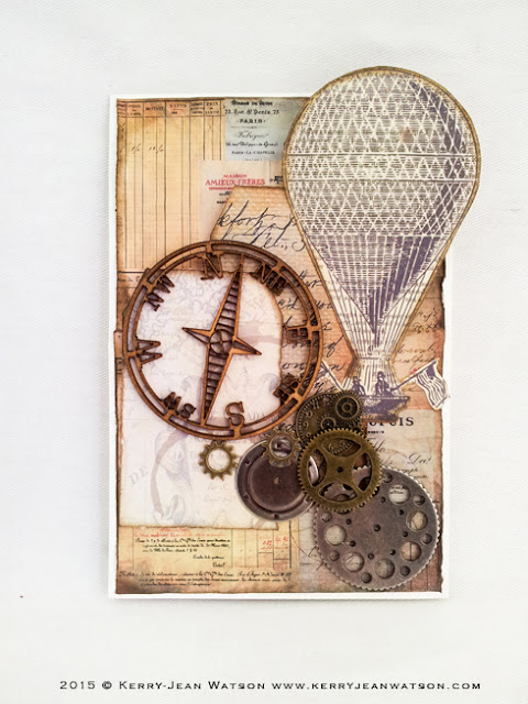 I have used old music sheets stacked behind the photo with a couple old book pages as well. The Donna Downey Studio Damask Stencil in the background was done using Prima's Finnibair Art Extra Vagance Texture Paste - Copper Crackle with a bit of misting over the top. I had a few scraps of the Cafe au lait cardmakers set on my desk which I turned in to tags and tuck them in behind the photo.