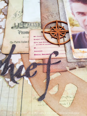 The "Mischief" title was cut using my cameo, love that thing but i just don't use it enough. I covered the title in some glossy accents for the final effect. The circles and compass rose are from Creative Embellishments which I just love. Adding the Keyhole just broke those circles up a little. All the papers behind the photo are from the cut and create page of the collection which are included in the Digital Paper Pack.